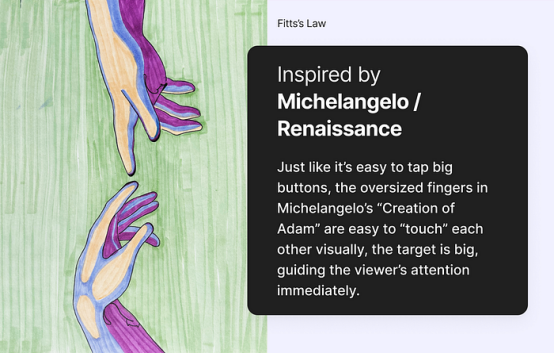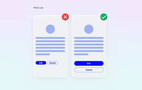 当目标更大、更近时,用户选择目标的速度更快,这就是为什么像行动召唤按钮这样的关键界面元素被设计得更大、更醒目且易于触及。