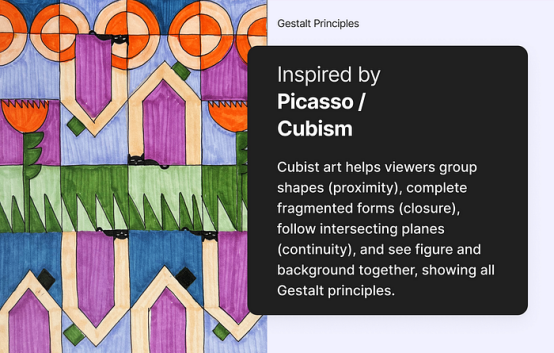 我们会本能地通过接近性和相似性对元素进行分组,补全不完整的形式,跟随线条和曲线,并区分图形与背景。