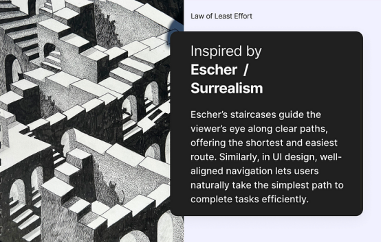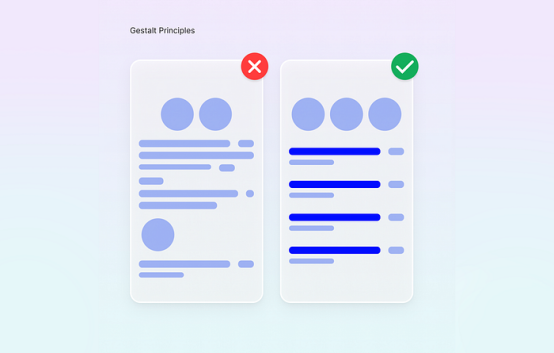 界面设计将相关的按钮、图标或文本分组(接近性),对相似元素使用一致的颜色、形状和排版(相似性),让用户在心理上补全布局(如渐进式加载指示器)(闭合性),引导视线沿着对齐的形态和流线移动(连续性),并将主要内容与背景分离(图形-背景关系)。