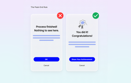 通过优化峰值时刻和最终步骤,例如新手引导、错误处理、结算流程和游戏化奖励,界面可以给用户留下积极的记忆,即使体验的某些部分不那么出色。