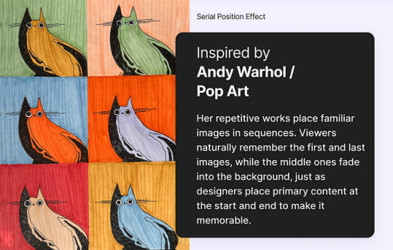 设计师可以在界面、广告或内容布局中策略性地运用序列——将标题或大图放在开头,将重要按钮放在末尾,以确保关键项被注意和记住。