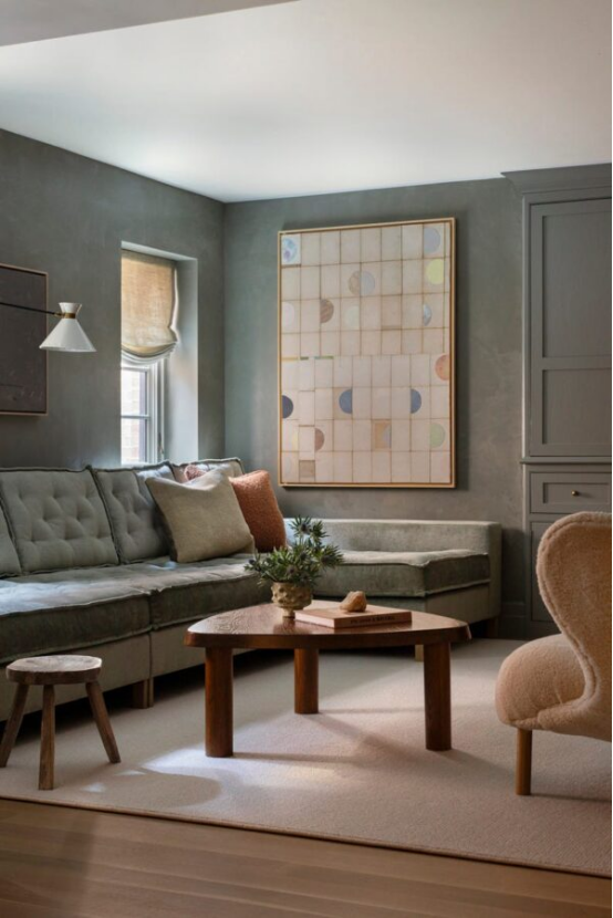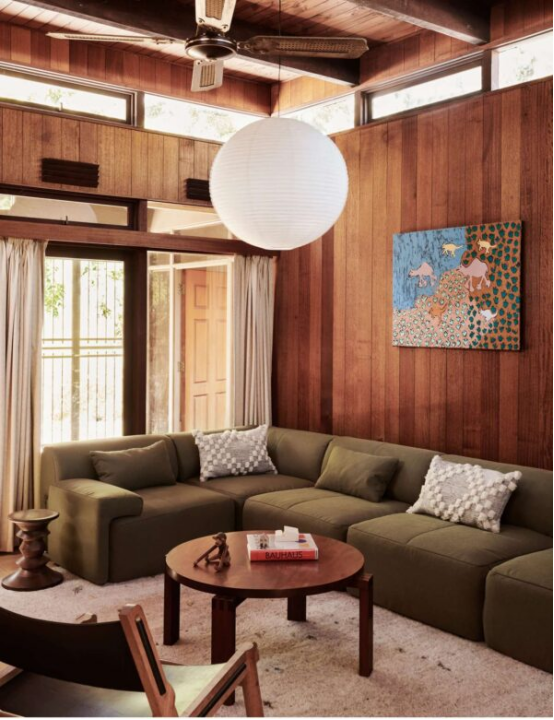 中世纪现代风格始终拥抱自然的温暖,其配色方案也完美地反映了这一点。大地色调,如赤陶色、橄榄绿、芥末黄和暖棕色,营造出一种沉稳、有机的感觉。这些色调与天然木材和金属 effortlessly 搭配,使其用途广泛且永恒。无论你是选择一面哑光粘土色的主题墙,还是通过抱枕和艺术品添加小面积的亮色,大地色都能创造出舒适而精致的氛围。它们让空间沉浸在舒适感中,同时保持清新与时尚。