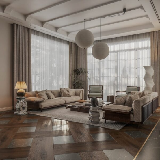 个性化中世纪现代风格最令人兴奋的方式之一,就是将其与乡村元素融合。中世纪风格倾向于流畅和精致,而乡村装饰则带来温暖、纹理和一种朴实的韵味。想象一下,一个流线型的胡桃木边柜配上一张厚重的再生木咖啡桌,或者一个简洁的沙发搭配一条舒适的编织盖毯。裸露的砖墙、天然石材或粗凿的梁木可以柔化中世纪家具的清晰几何线条。这种混搭创造出一种层次丰富的外观,感觉永恒又清新,精致却从不冰冷,使你的家既温馨、时尚又独一无二。