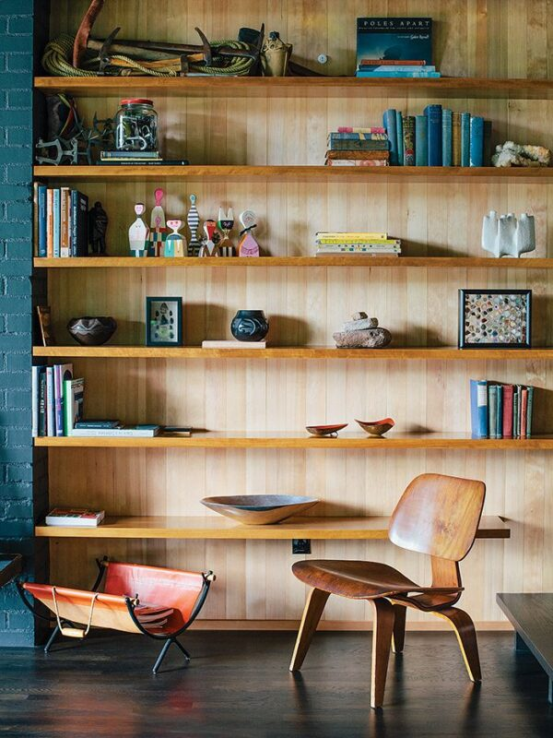 内置搁架是中世纪现代风格的经典之作,它将实用性与流畅设计相结合。与笨重的储物柜不同,内置设计创造了简洁的线条并最大化利用空间,将墙壁变成了功能性的展示区。用它们来展示书籍、陶瓷、植物或复古收藏品,像策展艺术画廊一样布置搁架,而非随意填满。柚木或胡桃木等天然木质饰面增添温暖感,而大地色调的喷漆搁架则可以制造微妙的对比。