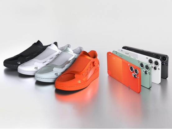 Abhishek Mistry 通过 这款概念运动鞋 完美诠释了 CMF 的美学。霓虹橙的配色方案鲜明地体现了 Nothing 的品牌身份,但真正让它闪耀的是那些巧妙的细节。它没有使用常规鞋带,而是采用了 BOA 系统,带有一个旋钮,其外观与 CMF 手机和耳塞上的旋钮如出一辙。模块化的后跟稳定器,基本上就是将手机可更换背板的想法完美地转化到了鞋履形态上。