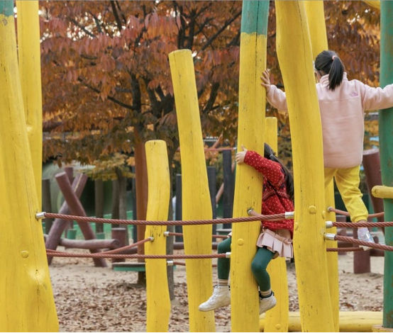 当然,在某些情况下,比如专门为使用轮椅的儿童设计的空间,布局可能需要有所不同。然而,孩子就是孩子,无论是否有残障。无论是玩捉人游戏、爬到高处躲藏、挤进狭窄的缝隙、享受刺激的声音或独特的质感,童年的本质是惊人地相似。这就是为什么思考如何创造能让所有儿童充分享受童年的空间是如此有意义的事业。我相信那些空间应该允许孩子们在玩耍中占据主导地位。通过最近与特殊教育老师的交谈,我意识到残障儿童很少被赋予真正的自主感。此外,在创建包容性游戏环境时,设施固然重要,但更关键的是减少残障儿童及其家庭面临的心理障碍。这一点在我们对150位父母进行的调查中清晰可见。许多人指出,他们的孩子在游乐场面临的最大挑战之一,是他人评判的目光或回避他们的行为。