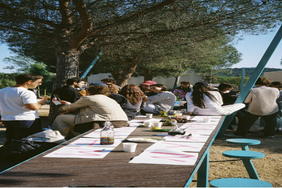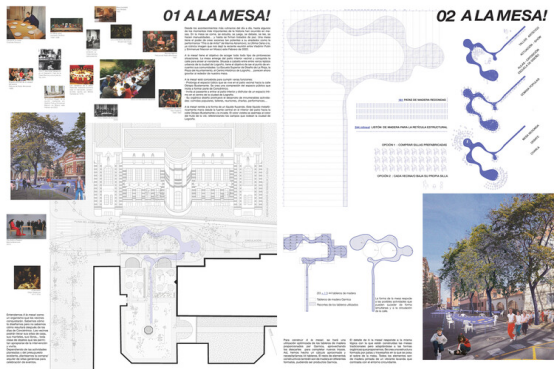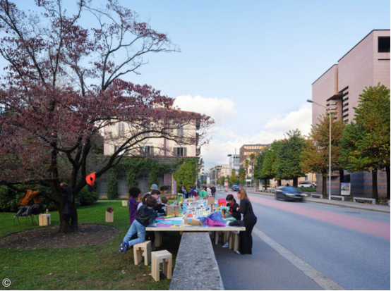 作为2022年孔森特里科艺术节的一部分,"来桌边!"抓住了围桌聚会的理念。其流动的形态创造了各种角落和壁龛,如同一个将被邻里们征服的生命有机体。其活动安排包括大众餐会、工作坊、会议和谈话等。