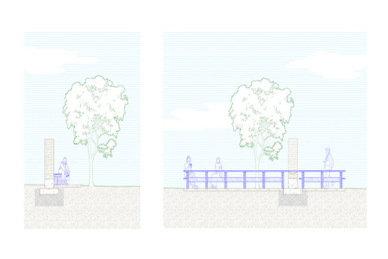 "餐室"是位于爱荷华州邦杜兰特佩托卡湖的一个实验性土筑展亭和公共用餐空间。作为一系列计划中装置的核心,其建造始于两堵用当地沙、黏土和砾石建造的无钢筋夯土墙。独特的是,该设计包含了战略性的侵蚀断点,以确保墙体随时间演变,让自然和时间本身成为结构持续转变的共同创造者。