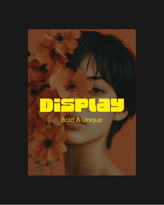 展示字体 —— 吸引注意力的高手。这些字体生来就是为了脱颖而出,大胆、艺术且常常带有反叛精神。它们非常适合希望被人记住的海报、包装和宣传活动。(例如 Impact, Lobster, Bebas Neue。)