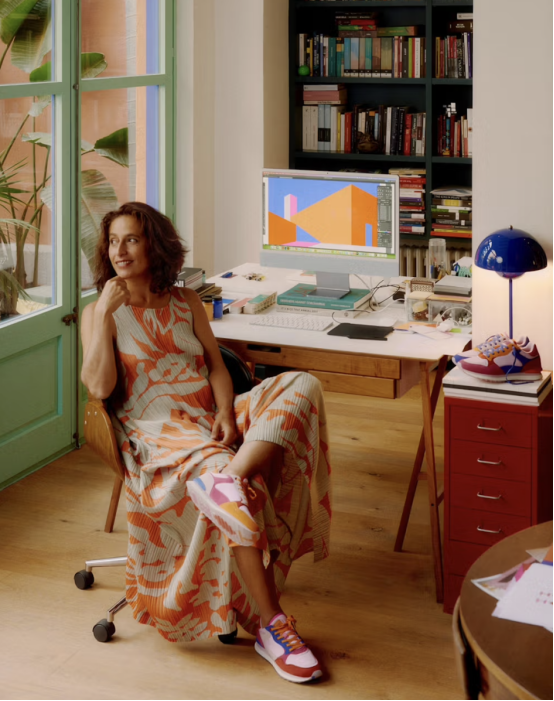 成果体现在墨西哥包豪斯系列中,该系列包含一款具有两种鲜艳配色、非常醒目的运动鞋,以及一件运动衫和一个手提袋,所有这些都带有 Malika 标志性的嘴唇标识。该系列从她最喜爱的地方——墨西哥汲取灵感,通过浅蓝色天空映衬下的红色、粉色和橙色,捕捉了该国标志性的色彩和建筑风格。