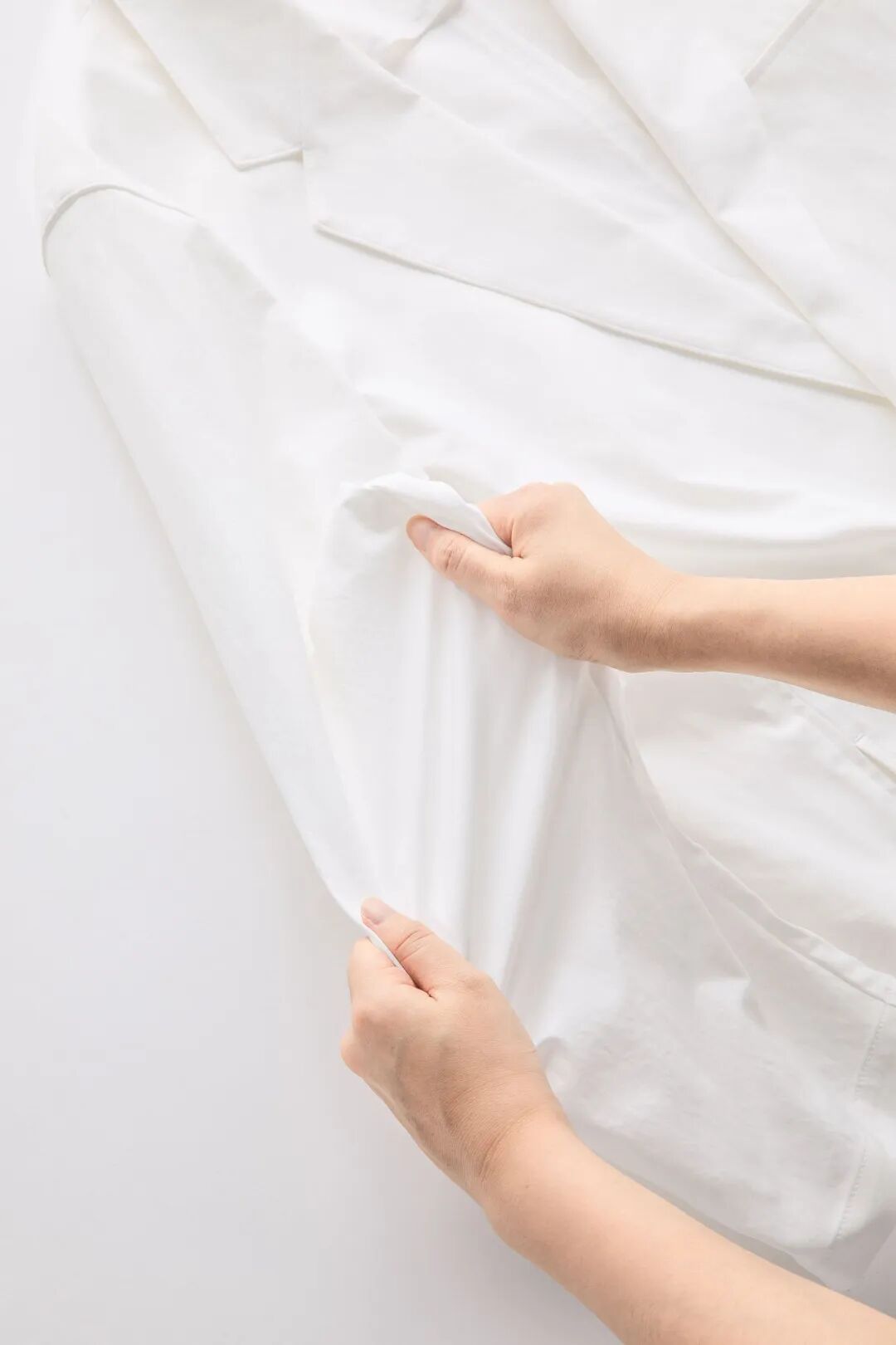 在医疗现场兼顾舒适穿着感与环境考量的医用白衣。通过运用AI进行纸样设计来减少布料浪费,实现轻盈且便于活动的造型。以简洁利落的轮廓贴近医护人员的日常需求。