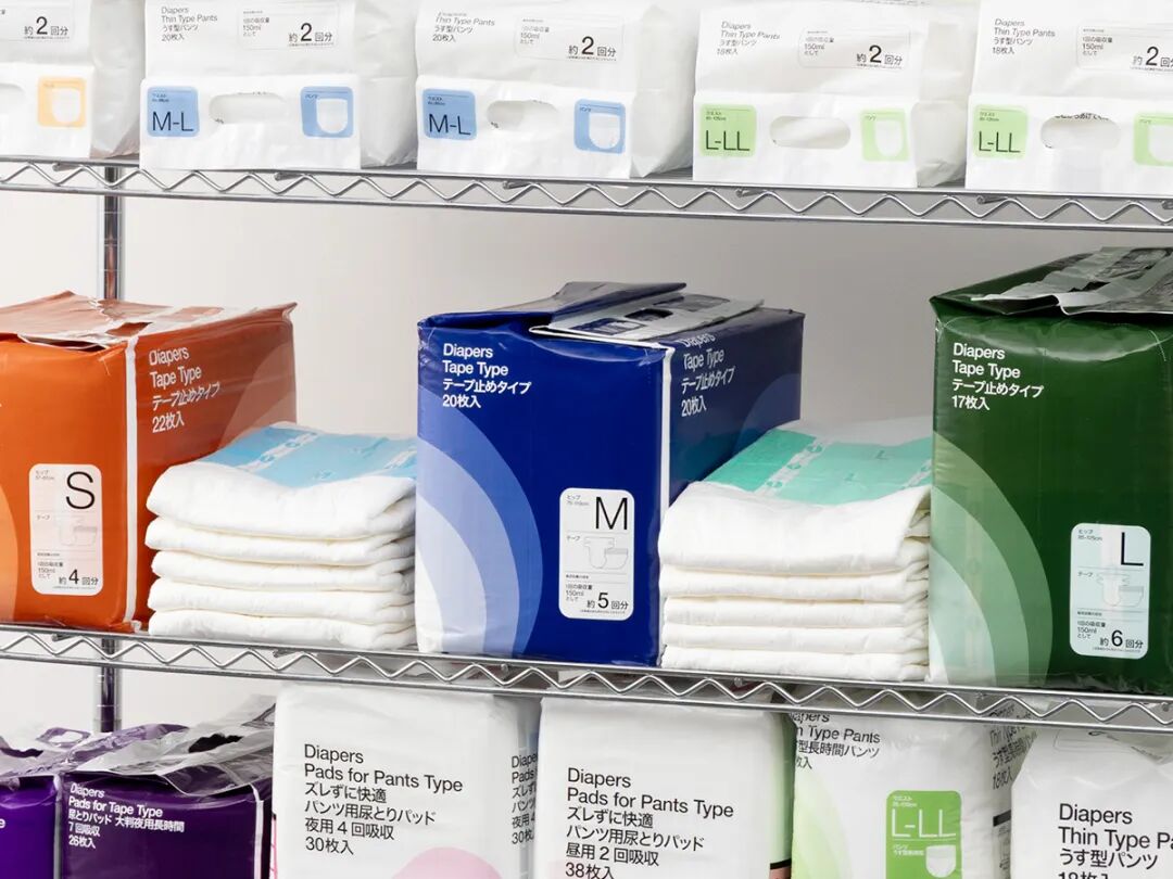 旨在提高护理人员作业效率、同时消除穿戴者心理抵触感的成人纸尿裤。通过清晰易懂的信息设计,便于在护理人手短缺的环境中迅速辨识纸尿裤类型。无论以何种方式摆放都能实现信息可视化,减少确认所需时间。同时采用无年龄与无性别感的设计,避免拿取时的尴尬,减轻穿戴者的心理负担。