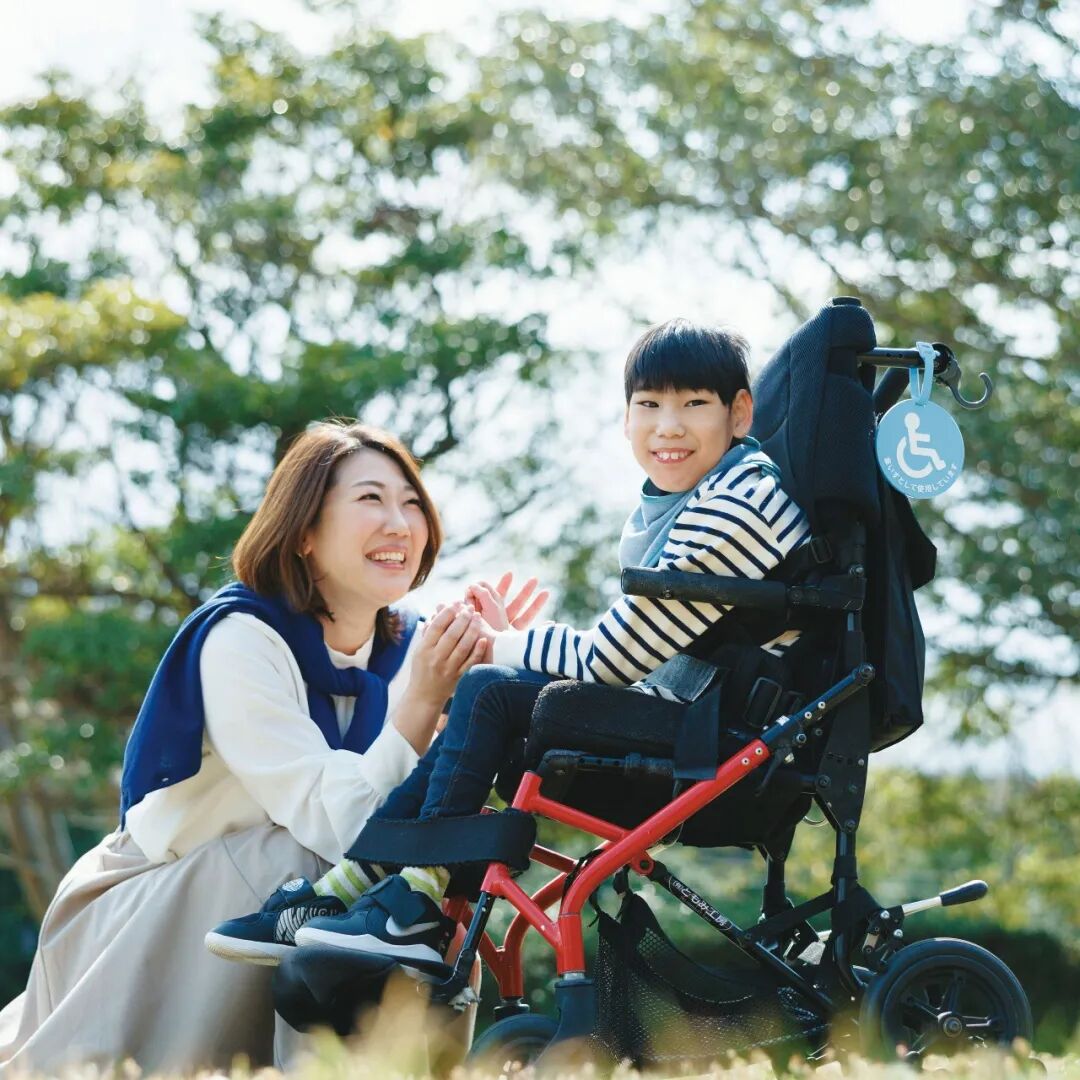 为因障碍或疾病而难以步行、需将婴儿车或儿童推车作为轮椅使用者设计的标识卡夹。通过易于任何人识别的信息传达设计,减少在公共场所遭受误解或不当言论的可能性。