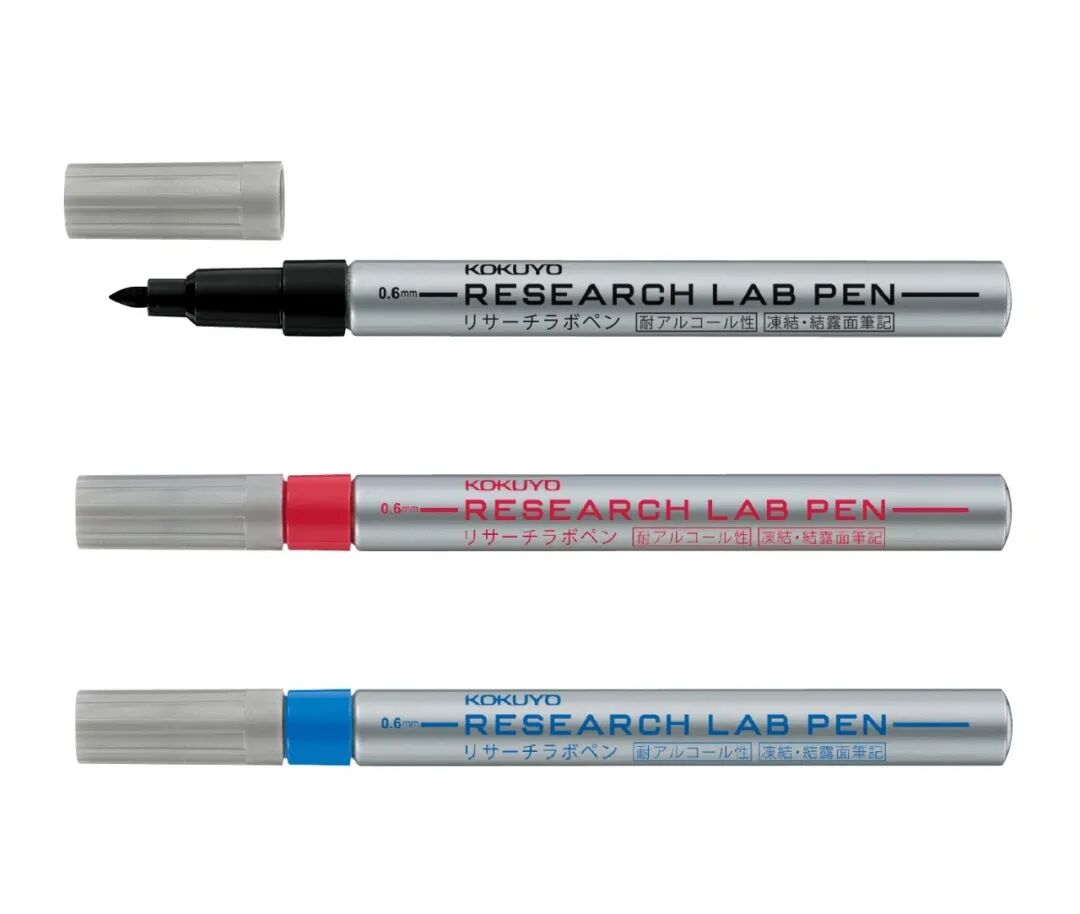 根据理化学系研究者的实际需求开发的标记笔。即使笔记表面附有酒精,文字也不易褪色;可在冻结或结露等湿润表面书写;配备0.6mm笔尖,可在微型试管等小型容器上进行细致书写,全面满足理科研究人员的使用需求。