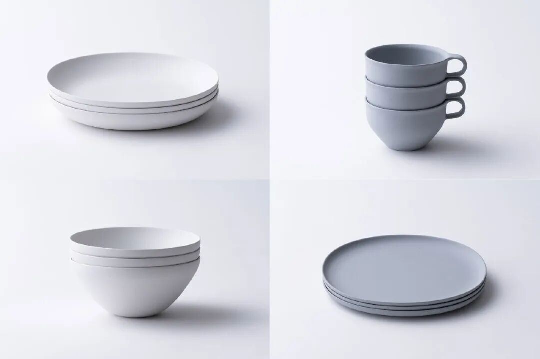 使用环保新素材「晟土」制成的肥前吉田烧器皿系列。该材料无需使用釉药即可烧成,能够将CO₂排放量削减约40%。原本被视为次品副产物的铁粉也被巧妙纳入设计中,从而实现了较高的良品率。由Azumi Shin设计,兼具实用性与美观性,作为“起点之器”引发关注。