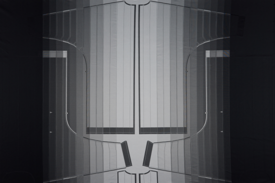 在巴黎建筑师田根刚设计的场景中,该装置突出展示了一种新开发的"比特级织物",这种织物通过编织密度而非染料实现从黑到白的转变。展览除了展出金川的相关作品外,还陈列了测试件、原型和工作工具,同时包括由金川和宫前义之进行的导览以及现场工作坊。该展览是一个不断发展的艺术与技术合作档案,今年晚些时候将在东京和大阪继续呈现。免费入场,但需预约。