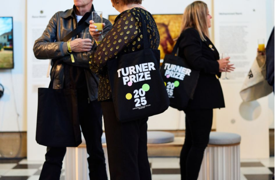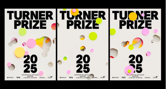 "对于 2025 年特纳奖,他们巧妙地开发出了一个吸引人、有冲击力且独具特色的标识,它在多个层面上都行之有效:作为宣传活动,它引人注目;在装饰华丽的历史画廊中,它气场十足;而在需要时,它又能退居其后,让艺术家的作品大放异彩。"