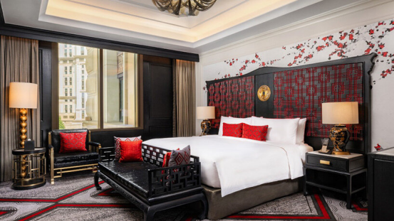 一些设计师的跨越则更为深远。已故的卡尔·拉格斐在澳门的酒店于2021年在他去世后开业,这是一座融合中国风与装饰艺术的东西方幻想之作,拥有一个360平方米的图书馆和一个作为中心装饰的实体喷泉。从钥匙图案的墙壁到古董书籍,每一件物品都带有他个人的印记。到2010年代中期,芬迪也揭幕了一家精品酒店"芬迪私人套房"——这是2016年在其罗马旗舰店上方开设的七套豪华套房,并合作开发了位于迈阿密海滨的芬迪城堡住宅公寓。
