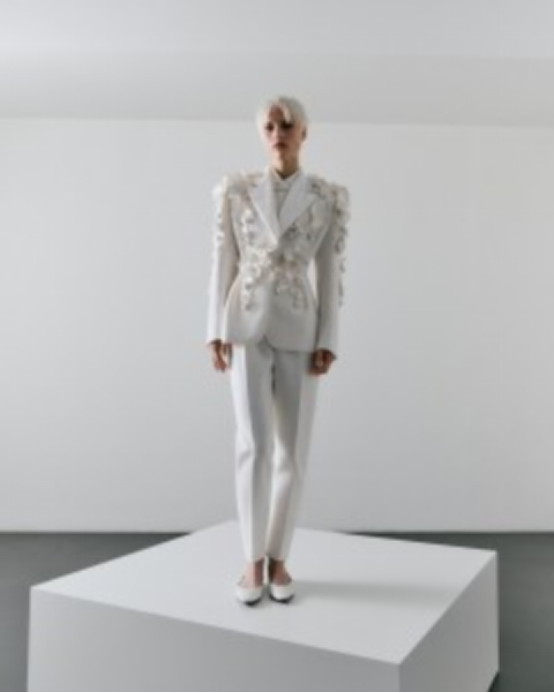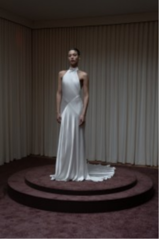 首先,赛琳娜·戈麦斯在九月份与本尼·布兰科结婚时穿着的拉夫·劳伦定制款礼服,赋予了挂脖领口新的生命力,这款设计无疑即将被大量仿效。查莉·XCX同样如此,她身穿丹妮尔·弗兰克尔的衬裙式礼服和薇薇安·韦斯特伍德的紧身胸衣礼服,为那些拘谨的新娘提供了理由,放下对完美的追求,尽情释放自我。因此,类似带有褶皱、不对称垂坠和毛边等尽享新婚之夜痕迹的凌乱设计比比皆是,进一步推动了恣意狂欢的精神。
