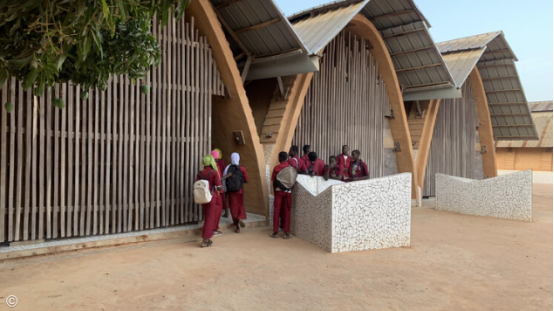 另一个例子是塞内加尔蒂翁克埃西尔的卡马纳中学,由 dawoffice / Foundawtion 设计。该建筑群采用当地模制的粘土砖建造,砖块排列成模块化的拱顶,确保了热舒适性和低成本。这个过程不仅仅是一个建筑工地,更成为一个培训基地,泥瓦匠和年轻居民在此学习和完善传统建筑技术。这些建筑深深植根于其背景环境,旨在不是引入外来的模式或材料,而是加强本地实践和可用资源。
