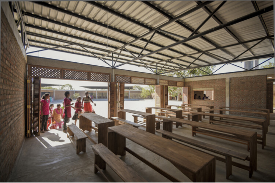 这种实践的第一个方面涉及使用地域性材料和适应性技术,使知识能够传递给社区。一个经典的例子是布基纳法索的甘多小学,由迪埃贝多·弗朗西斯·凯雷设计,教室使用当地生产的压缩土坯和社区劳动力建造。除了有形的成果,这个过程还留下了一个正常运作的建筑工坊,使得附近的社区能够复制这种模式,即使在最初对用泥土建房持怀疑态度的环境中也是如此。