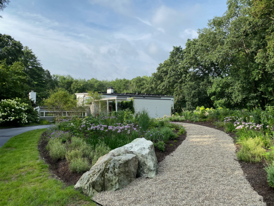 沉浸于花园中有助于平静甚至清空思绪。景观建筑师 Inge Daniels 将景观视为需要所有感官去体验的事物。一个很好的例子就是图中这片野生草地,这是她为马萨诸塞州康科德的一个庭院设计的,一条砾石小径从中穿过。