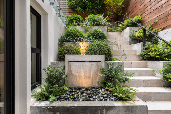 因此,studio dre 将这处喷泉放置在旧金山一所公寓的家庭办公室外。它邀请房主在工作间隙休息一下,或到户外接个电话,呼吸一些新鲜空气,从阳光中获取维生素D,并让水声和植物景观抚慰心灵。