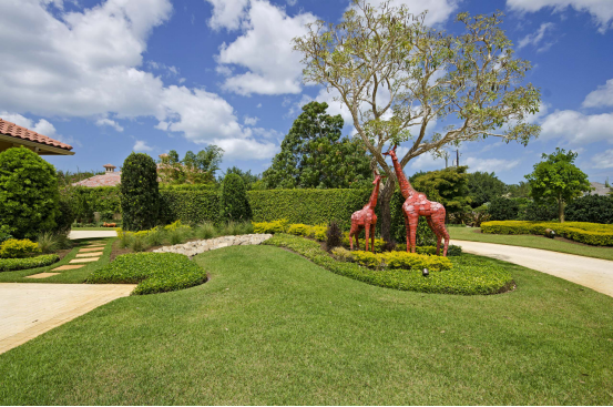 Gold 建议融入您最喜爱的颜色,以及能让您会心一笑的耐候户外艺术品。在这个迈阿密的景观中,色彩鲜艳的长颈鹿雕塑仿佛正在啃食树叶,带来了惊喜和愉悦。