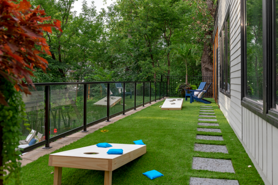 在明尼阿波利斯的这个阳台上,Mom's Design Build 为玉米洞游戏创造了一个好去处。此外,几张放置得当的阿第伦达克椅提供了欣赏自然、阅读书籍或观看玩家比赛的位置。