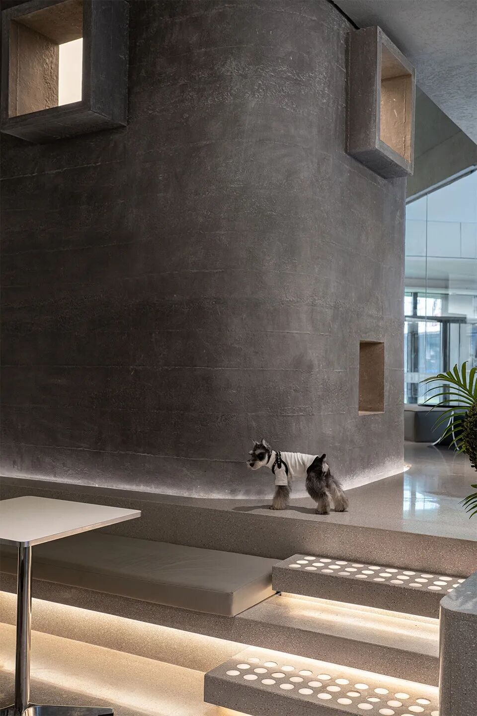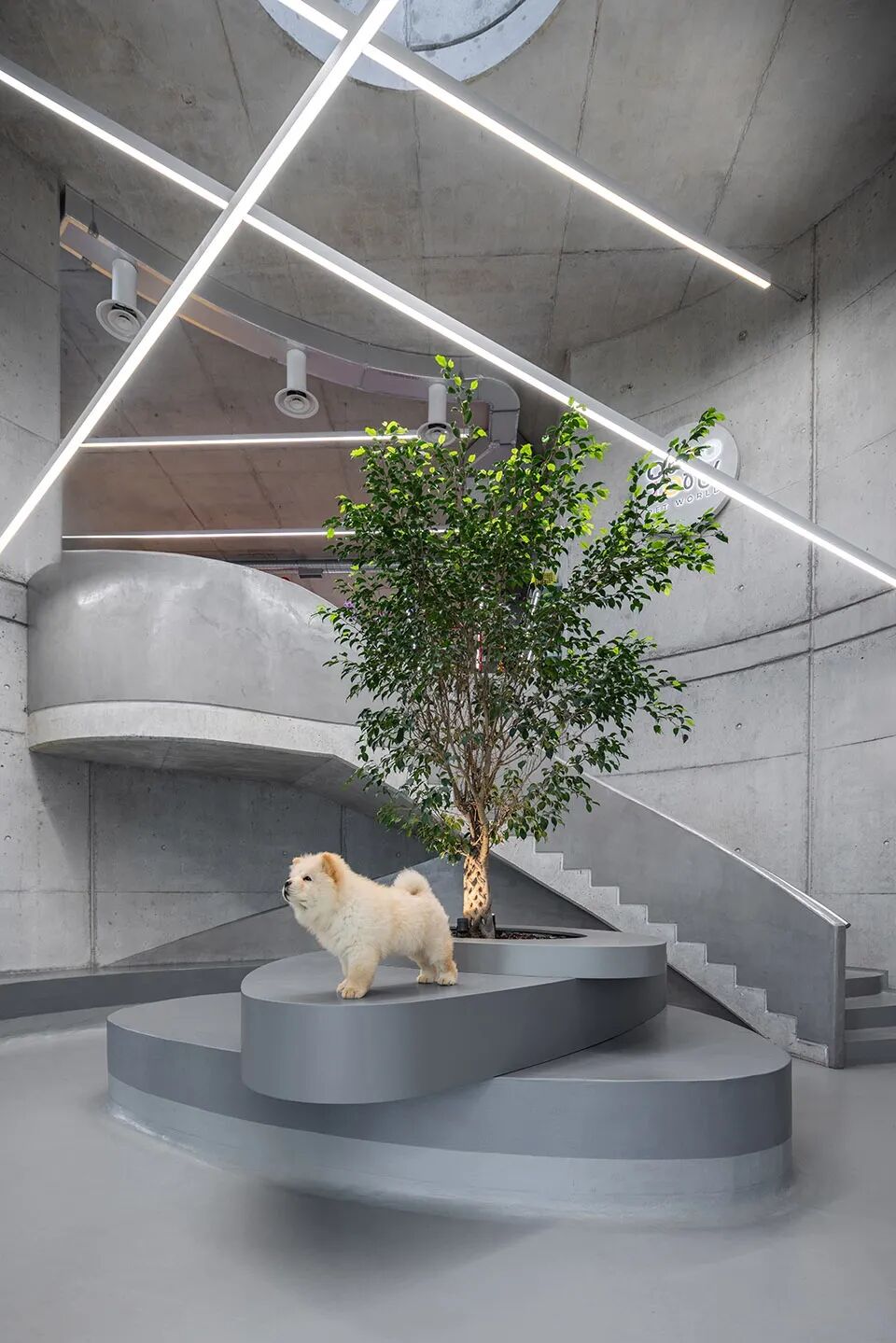围绕室内中心立柱,设计团队建立起核心筒。筒内区域可供主人为爱犬举办派对,或是为门店部分经营活动提供私密场地。