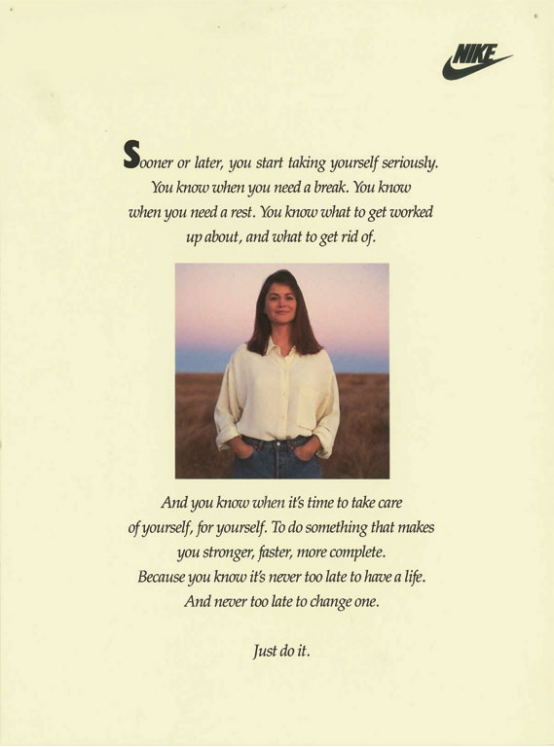 耐克的"Just Do It"——大胆的排版、极简的设计和超越体育的强大图像。