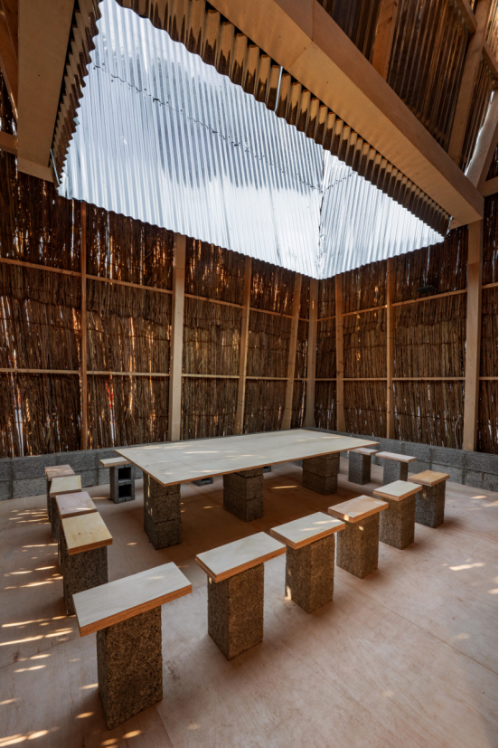 "我们的实地调研侧重于那些迄今为止仍未受开发影响的地方;在山区、沿海地带和沙漠中," Darwish 说。"我们想利用现成的天然材料,结合传统技术——比如我们在沙漠中观察到的堆叠系统——来重建这个在区域内十分重要的庭院空间," Abbas 补充道。