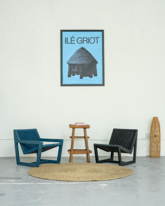 他们的 Ile Griot(格里奥之家)装置被设置为格里奥可能居住并邀请人们到访的空间,因此他们邀请参观者进入这个"家",同时举办故事会、讲座和放映活动。
