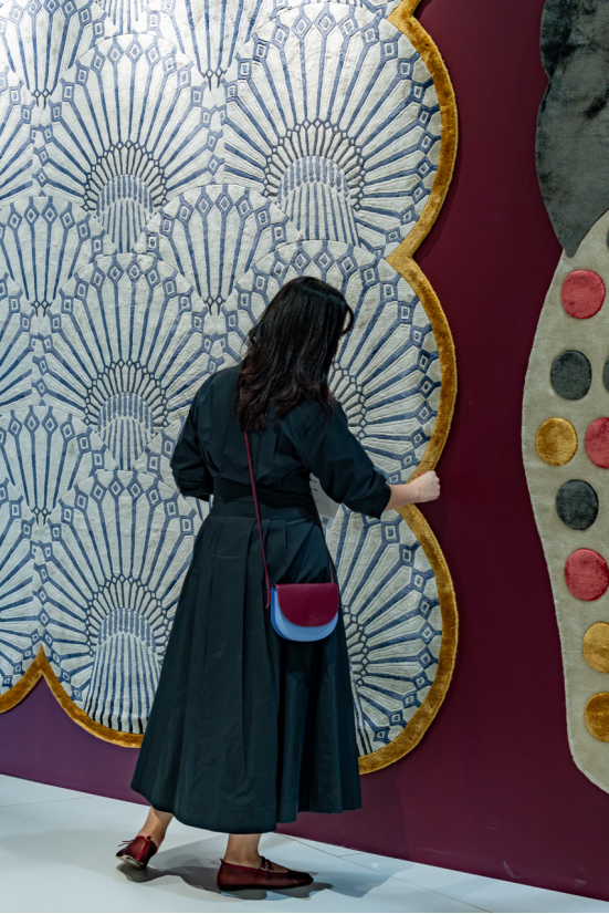 同样在 Downtown Design 展上,Doodle and the Gang 与地毯公司 Hands 的合作及其 'Postcards' 系列,是对埃及姐妹设计双人组 Asmaa 和 Mentalla Said 的传统与旅行所承载的集体记忆的趣味致敬。像 'Twirl' 这样的作品从开罗旋转的 Al Tannoura 舞者所穿的苏菲派服饰中汲取灵感,而 'Bonjuseh' 则颂扬了该地区的标志性饮品 Bonjus。"这些不仅仅是我们个人的记忆,其中很多标志性事物在整个地区都广为人知,比如 Aroosa 茶," Mentalla 说。"我们希望通过这个项目,用记忆来讲述区域性的故事,唤起一种充满怀旧感的舒适。"