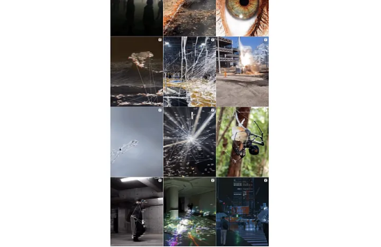 最初作为对隐私问题的评论(几年前地铁监控摄像头拍到的年轻人照片在网络上疯传引发了这一趋势),现已演变成 Z 世代创作者所青睐的一种前卫审美代码。设计师有意模仿监控摄像头的外观:高对比度的单色视频静帧,像素化且去饱和度,如同远距离摄像头拍摄的效果。