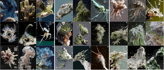 我们还看到模仿有机形态的生成图形,如木纹、大理石或树叶,以及将植物或动物插图与未来主义元素结合的用户界面。
