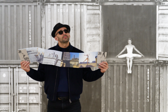 此刻在中国,JR正在呈现两个个人展览:上海贝浩登的"动态人生"和北京常青画廊的"万花筒"。这两个展览共同汇集了他过去二十年职业生涯中一系列令人印象深刻的作品。在贝浩登,芭蕾舞者舞至中途的瞬间被捕捉下来——并非在舞台上,而是在屋顶、在造船厂、映衬着巴黎的天际线。与此同时,在北京,画廊的墙壁仿佛裂开,露出了远处颐和园亭台的轮廓,模糊了幻觉与建筑之间的界限。