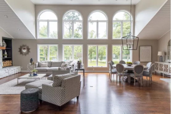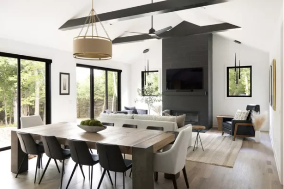 在开放式住宅中,将你的待客区域——如起居区、用餐区和厨房——彼此靠近放置,可以创造一种自然流畅的感觉,让人感觉轻松且便于社交。保持这些区域相邻,有助于客人在交谈、用餐和食物准备之间舒适地移动,而不会在布局中感到迷失。这种邻近性也使你的待客活动更加轻松,因为你在不同任务间移动时仍能与每个人保持联系。通过有意地将待客区域组合在一起,你创建了一个连贯的"社交核心",它依然感觉宽敞、开放且美丽相连,而无需任何物理屏障。