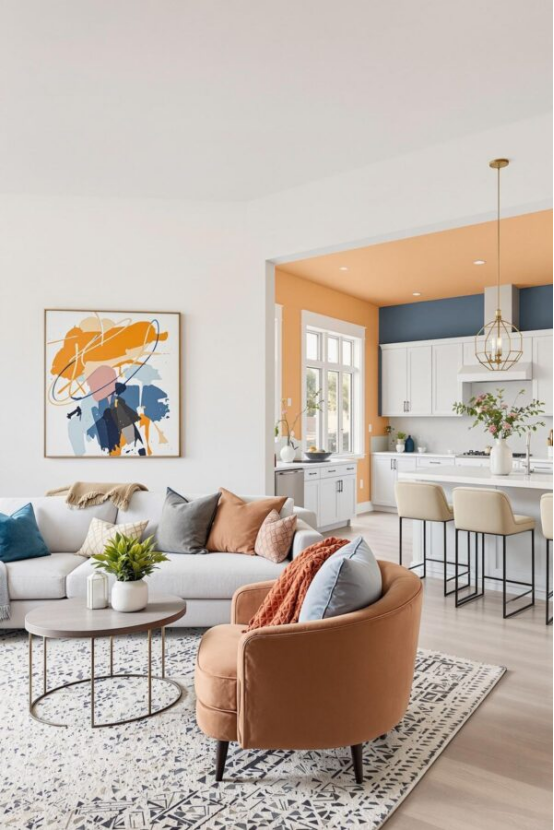 颜色是一种非结构性的、强大的空间划分工具。将开放式布局的一部分粉刷成稍有不同的色调,你就能在不破坏流动感的情况下,立刻创造出一个视觉边界。餐厅区域后方的鲜明色彩,生活空间的舒缓中性色,或工作区附近俏皮的点缀色,都能帮助每个区域获得自己的个性。即使是细微的变化,比如保持在同一个色系内,也能产生强大的效果。颜色成为一个温和的分隔符,引导思绪从一个功能区转换到下一个,同时完美地保持开放感。