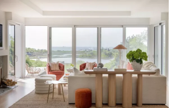 边几是开放式家居中最实用、最时尚的分隔物之一。放在沙发后面、两个区域之间或过渡区,它能创造一个柔软的边界,而不会阻挡光线或行动。边几充当了视觉上的"停顿",标志着从起居区到餐厅区,或从休息区到入口的转换。添加装饰品、灯具、书籍、植物来增强分隔感。这是一种微妙而有效的方法,既能划分出结构,又能保持布局的通透和连接。
