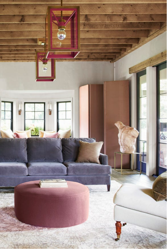 天花板常常被忽视,但它们是开放式住宅中强大的空间划分工具。在特定区域上方添加横梁、木饰板、一块粉刷区、格子细节,甚至建筑照明,都能瞬间定义该区域。起居区上方的镶板天花板让它感觉稳固;餐桌上方的吊灯群营造出亲密感。这些头顶的提示引导视线向上,并有助于塑造空间体验。通过赋予每个区域自己独特的天花板"时刻",你就能在不失去开放式生活自由感的情况下实现分隔。