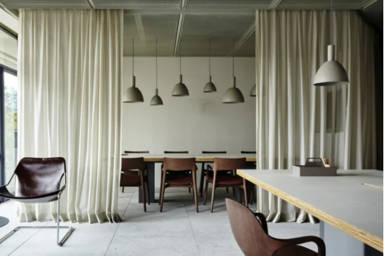 窗帘和柔软面板提供了一种美观、非永久性的方式,在开放式住宅中创造分隔。轻盈透气的面料可以在工作室公寓里框出一个睡眠区,或为工作空间提供隐私而不牺牲自然光。拉开时,窗帘恢复完全开放感;合上时,它们创造出一个温馨私密的区域。柔软的面板还增添了质感和动感,赋予空间温暖和深度。它们非常适合租房者、小户型或任何希望拥有能随日常需求而变化的适应性空间划分的人。