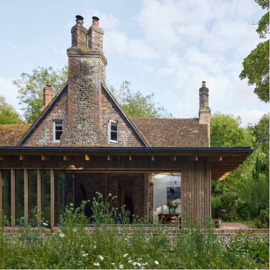 位于英国[汉普郡]的这座二级保护磨坊住宅,由伦敦事务所[Cooke Fawcett]进行了翻新,增建了一系列木质覆层的附加结构。