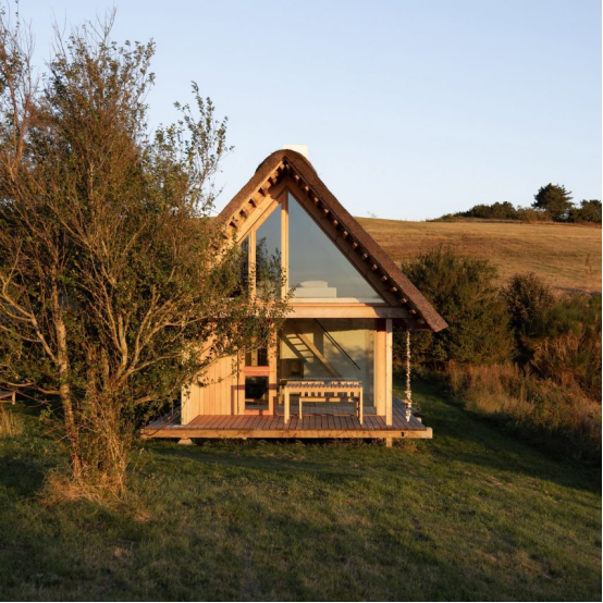 Vejrhøj 模仿了原有建筑的设计——该建筑最初由丹麦建筑师 Ole Meyer 于 1967 年完成,其标志性特征是顶部铺有茅草屋顶的对应坡屋顶体量。