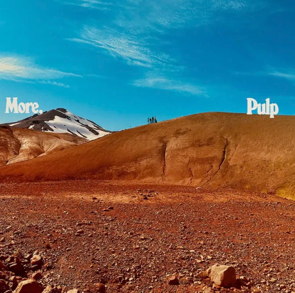 随着他们24年来的首张录音室专辑回归,Pulp的《更多》的封面艺术,完美契合了这支备受爱戴的回归英雄乐队。专辑封面由平面设计师朱利安·豪斯设计(其作品包括绿洲乐队的《挖掘你的灵魂》和The Prodigy的《永远寡不敌众,永不被超越》),其醒目的主图是主唱贾维斯·科克尔于2024年7月在冰岛凯德灵加山火山地形旅行时拍摄的——其高对比度的色彩是唱片能量的鲜明标志。然而,就在远处,山顶上坐着与乐队1995年杰作《不同的班级》封面相同的乐队成员纸板人像——来自这群始终是"心照不宣"大师的会意一瞥。