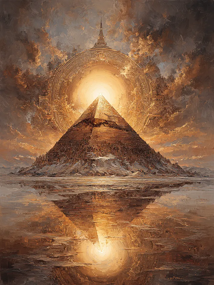 提示: 一座著名建筑著名建筑在金色落日下如蜡般缓缓融化,超现实主义,地面上的倒影,绘画般的质感,受萨尔瓦多·达利影响,细腻的笔触
