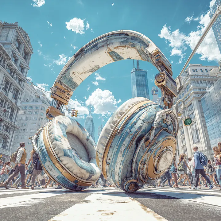 提示: 一个巨大的物品物品被放置在普通城市街道中央,人们自然地与之互动,充满趣味的透视感,广角镜头效果,明亮的正午光线