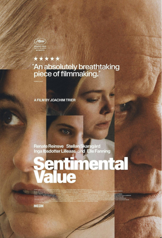 帝国设计为约阿希姆·特里尔的《情感价值》设计的这张海报,采用紧凑的裁剪和幽闭的构图,呼应了影片关于父权控制和代际创伤重构的主题。在这种非传统的视觉层次中,角色们回避彼此的目光,却又被困在一起,相互牵制。其结果造就了本年度最引人注目、最具原创性的海报之一。