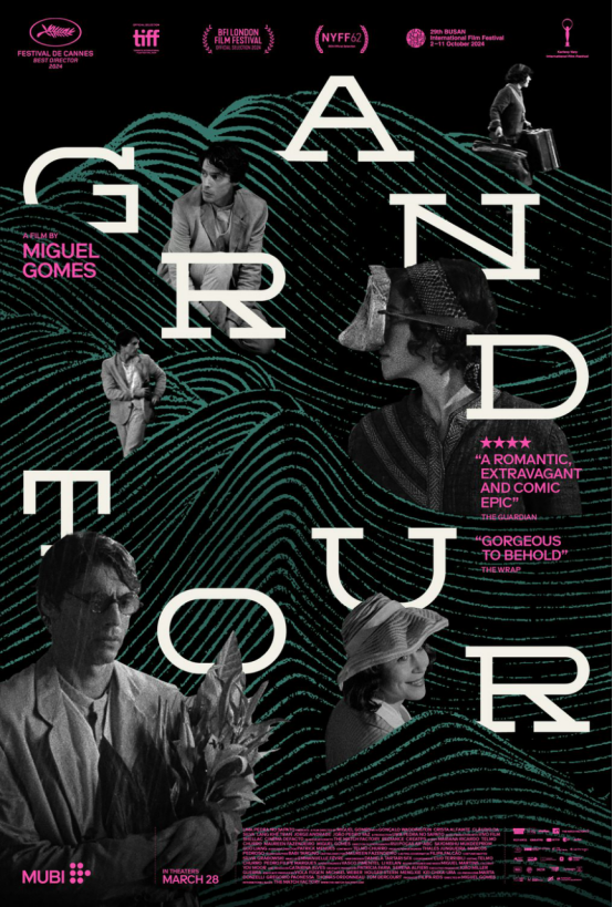 在戛纳电影节期间为《综艺》撰稿时,杰西卡·基昂称米格尔·戈麦斯的年代爱情片《大巡游》是“一部迷人、生动、跨越时代、穿越大陆的旅行见闻录,它冒着引发一种‘解药’的严重风险:一剂令人渴望生活、渴望流浪的强效药。” 在其国际发行海报中,艾琳·李的设计融入了影片颗粒感的16毫米黑白摄影风格,同时将其沉浸在一片充满活力的色彩与字体海洋之中。