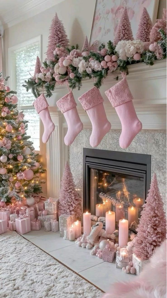 凭借其温暖、柔和与多用途性,粉色已成为最受欢迎的非传统节日色彩之一。无论是使用腮红粉装饰球、玫瑰色丝带、柔和色调的花环还是粉色蜡烛,这种配色都营造出一种梦幻、奇趣的节日氛围。与刷金或香槟金等金属色搭配,会显得成熟而奢华;与白色和中性色搭配,则呈现出柔和、斯堪的纳维亚风格。粉色装饰完全脱离了传统的红绿搭配,提供了一种有趣而优雅的季节性美学。